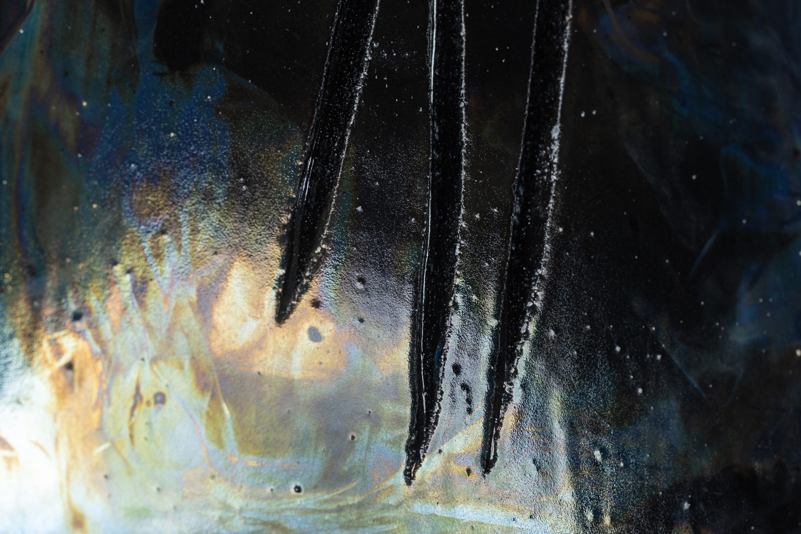This combustible burst into flames and oxidizes the metals within the glaze.