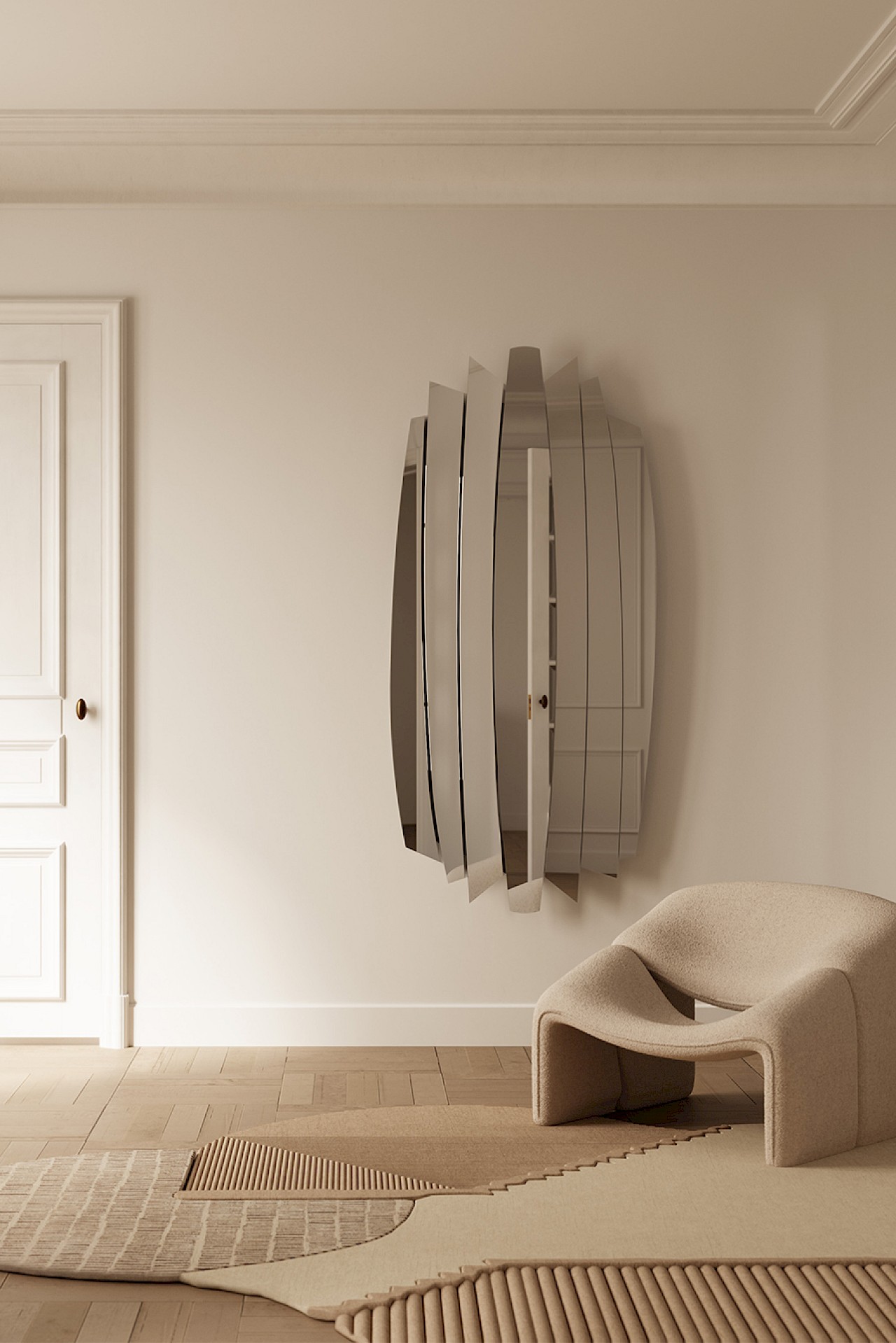 The TUTTI XL mirror is the perfect example of our craftsmanship and creativity. This striking design plays with the positioning of the 7 mirror slats to fragment the reflection. The result is a dynamic image that continues to amaze.